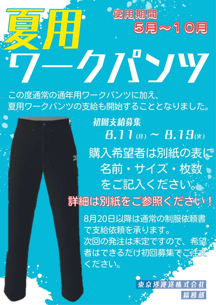 新たに制服として夏用の作業用パンツを導入することといたしました。